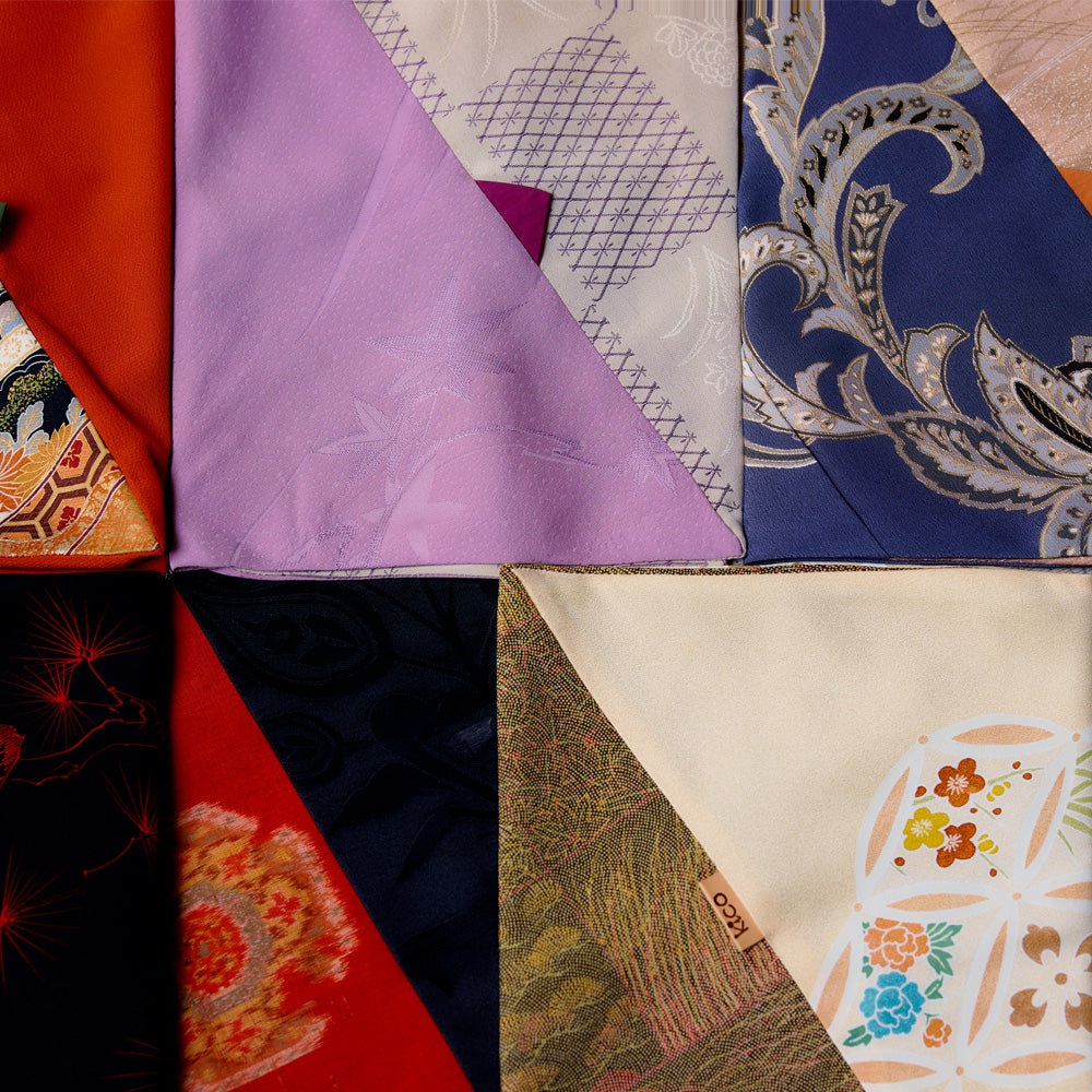 kicoのバッグは、着物1着から1〜1.5個ほどしか作ることができません。そのため、同じデザインのバッグを2つ作ることはほとんどありません。ひとつひとつが、世界にひとつだけのオリジナルバッグです。また、自分で選んで作ることができるセミオーダーメイドも受け付けています。着物、バイカラーの有無、サイズ、裏地などをお好みに合わせて選ぶことができます。大切なお着物を持ち込んでいただき、自分だけのバッグを作ることも可能です。